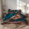 Blue monkey jungle duvet cover set cream navy periwinkle, whimsical tropical bedding with floral pattern, soft microfiber pillowcases