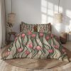 Bold yellow tulip duvet cover set black cream green modern floral bedding, soft microfiber abstract design with pillowcases