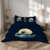 Eagle Bedding Set Black Teal Copper Midnight Duvet Cover with Pillowcases, Fierce Bird Quilt Cover