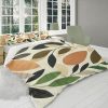 Earth Tone Abstract Boho Leaves Duvet Cover Set, Botanical Farmhouse Bedding, Rustic Biophilic Home, Brown Beige Green Bedroom Decor