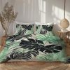 Green Beige Modern Botanical Leaves Duvet Cover Set, Twin Queen King Size, Scandinavian Floral Bedding Gift For Biophilic Bedroom Decor