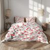 Love Birds Bedding Set Black, White, Red & Green Tree Branch with Hearts Romantic Quilt Cover Soft Microfiber