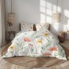 Retro Floral Duvet Cover Set with 70s Style Swirls and Daisies in Burnt Orange, Mustard Yellow, Olive Green, and Creamy White
