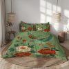 Retro Green Floral Duvet Cover Set Rich Brown, Lime Green, Mint Beige, and Olive Tones for a Groovy, Nature-Inspired Bedroom Vibe