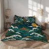 Tropical Floral Bedding Set, Green Blue Pink Duvet Cover, Hibiscus Bed Set, Boho Botanical Bedroom Decor