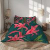 White Bedding Set with Pink Poppy Flowers Duvet Cover and Pillowcases Blue and Yellow Accents, Floral Bedroom Decor